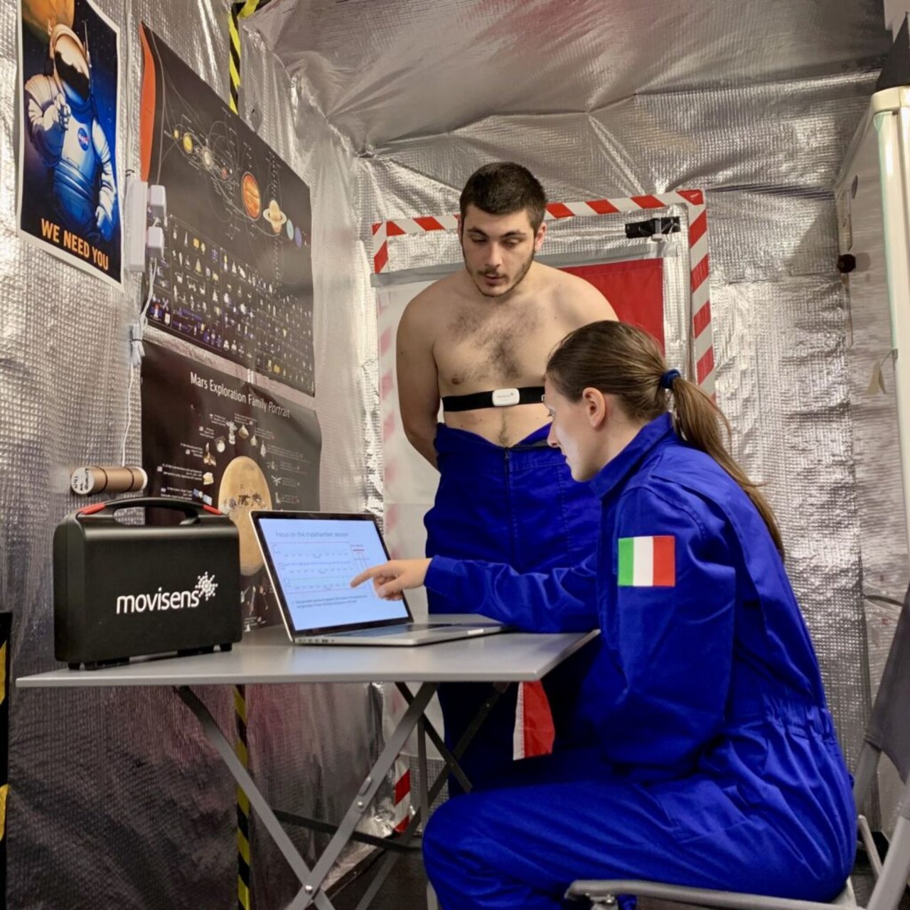 Il sistema era importante per misurare la percezione soggettiva del tempo: già al secondo giorno le nostre giornate non erano più scandite da mattina, pranzo, pomeriggio, cena, sonno, ma da T0+X e l’attività pianificata… Sono stati molto stressati i nostri ritmi circadiani: le giornate erano molto intense, avevamo tanti esperimenti da fare, io i miei con il dispositivo Movisens ma anche gli altri, che si occupavano di studi dalla fisiologia alla biologia, alla socio psicologia, all’ingegneria e alla robotica…